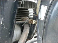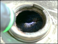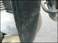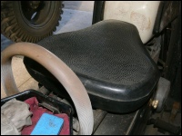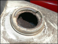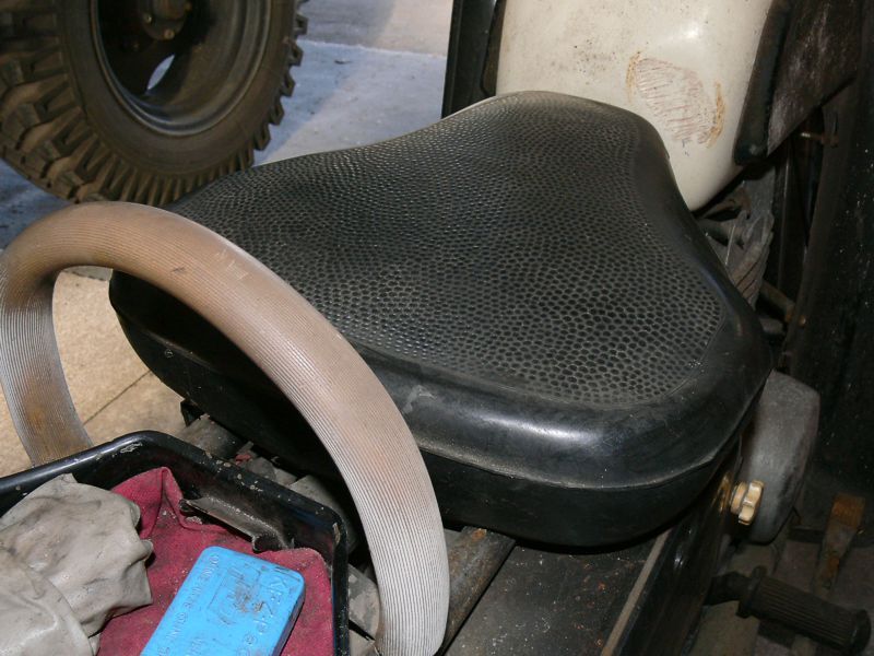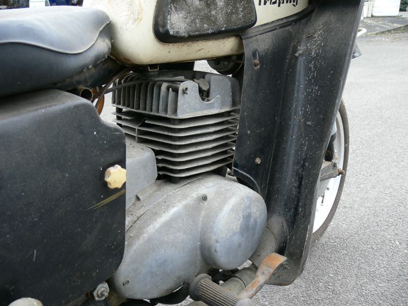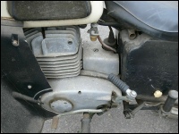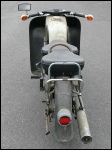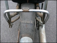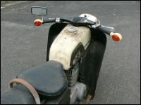 Unsere zweite ES 250/2 (eigentlich die dritte) steht in der Halle und es wurde Zeit, sie genauer unter die Lupe zu nehmen. Nachdem die erste Euphorie verflogen war, ging es daran, sie nüchtern zu betrachten. Es war einen normale „zweifünfer“ ES mit zwei Besonderheiten - Kniebleche und Einzelsitzen. Sie soll, nach Angaben der Verkäuferin, über 30 Jahre in der Garage gestanden haben. Sie war etwas eingestaubt, der Tank hatte eine Beule und war noch teilweise mit dem alten Benzin gefüllt. So sah er dann innen auch aus! Das Knieblech hatte rechts auch eine Beule und war leicht verbogen. Auch die Lampe war nicht makellos. Alle Chromteile waren angerostet und der Lack dem Alter entsprechend matt, aber nicht sonderlich rostig. Wie viele Motorräder in der DDR hatte auch dieses einen selbstgebauten Zierbügel auf dem vorderen Schutzblech. Der Zustand war also dem Alter von 44 Jahren (Bj. 1972) entsprechend normal. Herausragend war aber der Zustand der Einzelsitze. Bis auf leichte Korrosion an der Unterseite waren sie top!