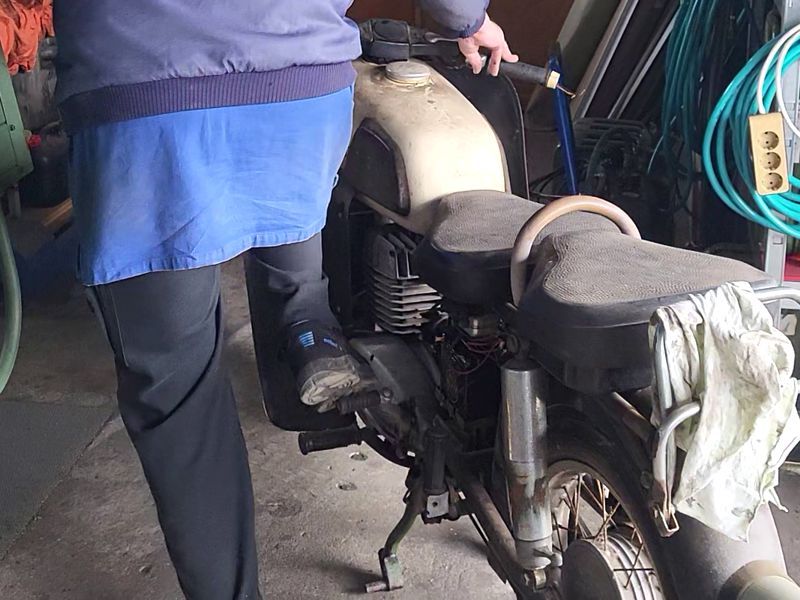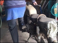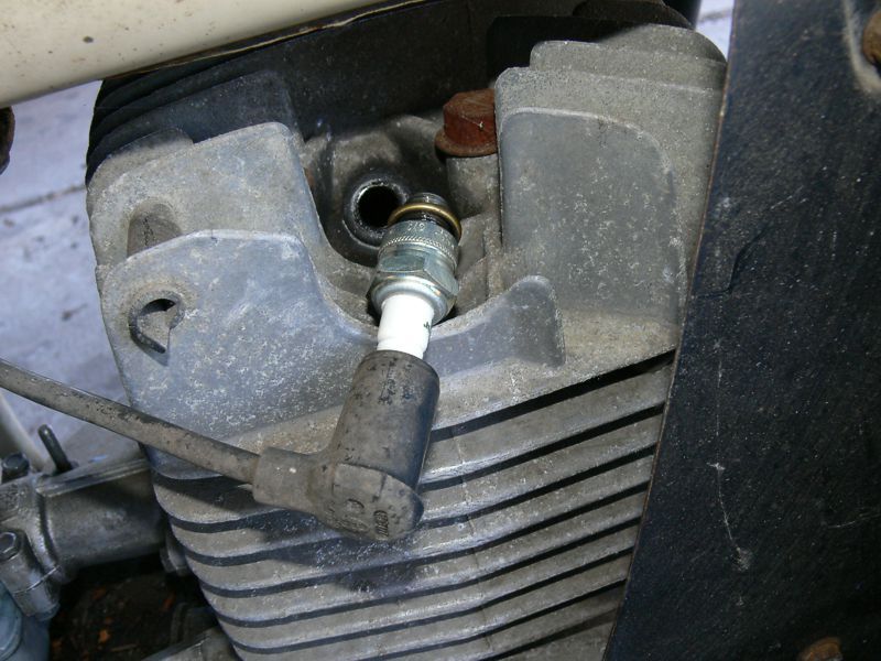 Die „neue“ MZ ES 250/2 ist begutachtet und wir wollten jetzt wissen, ob sie läuft. Zuerst ein leichter tritt auf den Kickstarter. Die Kurbelwelle drehte sich schon mal. Dann drehten wir die Zündkerze raus, sprühten etwas Multiöl in die Zündkerzenbohrung und betätigten mehrmals den Kickstarter per Hand, damit sich das Öl etwas verteilte. Da sich das Ganze recht gut anhörte, gingen wir zum nächste Punkt über.