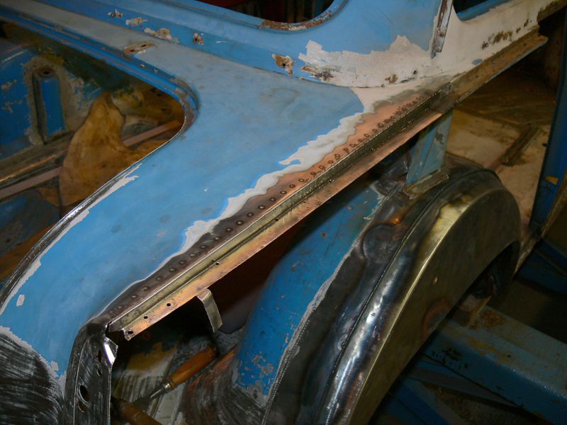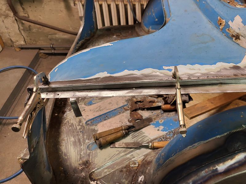 und neue Bleche bzw. Teile der grünen Karosserie wieder eingesetzt. Da die Bördelung,