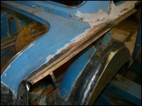 die Arbeiten an der Karosserie auf das Entfernen der alten Farbe. Was nicht so einfach