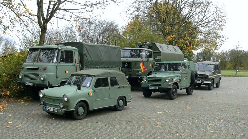 Feiertag „Allerheiligen“. Alle hatten frei und jemand kam auf die Idee doch da eine Ausfahrt zu machen. Kevin schlug dann „Burg Rabenstein“ (im Fläming) vor. Er war schon öfter dort und man könnte dort auch mit größeren Fahrzeugen parke. Gesagt, getan. Da wir 5 Leute (+ Zuwachs) waren, sind wir dann auch mit 5 Fahrzeugen los. W50, ELLO, P3, Trabant Kübel und dem UAZ eines Bekannten, der bei uns untergestellt ist. So wurde die komplette „NVA-Flotte“ mal wieder bewegt. Die Tour führte die Landstraßen entlang von Magdeburg über Möckern, Loburg und Wiesenburg/Mark, wo wir auf einem Parkplatz eine kleine Pause einlegten, hin zur Burg Rabenstein. Der Parkplatz war recht groß und nicht allzu voll, so das wir genug Platz für unsere Fahrzeuge hatten. Nur noch ein kurzer Fußweg und wir waren da. Da wir kurz vorher noch reserviert hatten, war auch ein 6er Tisch frei und wir konnten ohne anstehen in Ruhe Mittag essen.