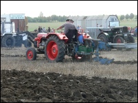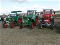 Am Wettpflügen nahmen Traktoren verschiedenster Typen und Epochen teil. Mein Favorit war ein Eigebautraktor mit einem Cunewalder Motor 2VD 8/8-2SVL (oder baugleich), der eigentlich im Geräteträger RS09 bzw. als 4-Zylinder im Bagger T157 eingebaut wurde. Der zog Runde um Runde seine Bahnen und brachte auch eine passable Furche zu Stande. Die beiden Bulldocks (hochgelobt und vergöttert) kratzten nur mit dem Pflug auf Oberfläche lang und der grüne Deutz braucht 3 Leute um den Pflug überhaupt in die Erde zu bekommen. Die alte DDR-Technik hat in diesem Fall mal wieder hervorragende Dienste geleistet!