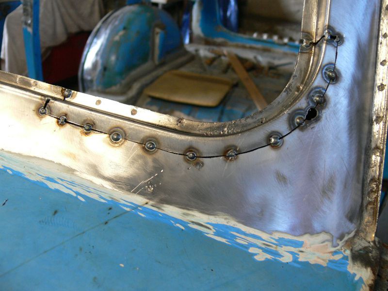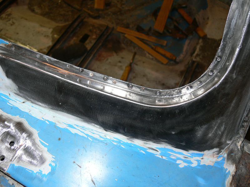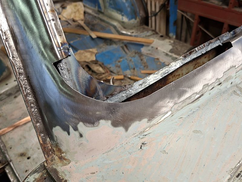und neue Bleche bzw. Teile der grünen Karosserie wieder eingesetzt. Da die Bördelung,
