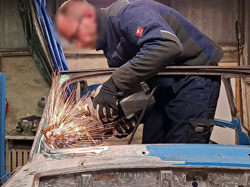die Arbeiten an der Karosserie auf das Entfernen der alten Farbe. Was nicht so einfach